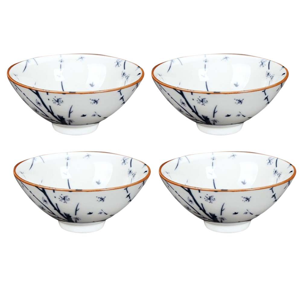 4-pack Chinese Ceramic Kung Fu Tea Set Blue and White Cups Tea Bowl Tea Ceremony Accessories Set, 40ml, Wintersweet
