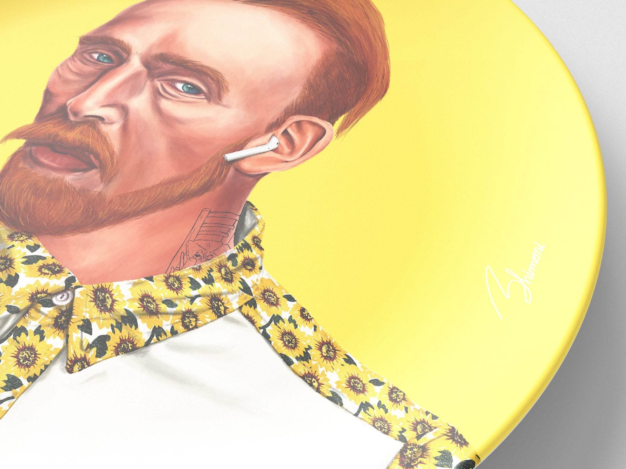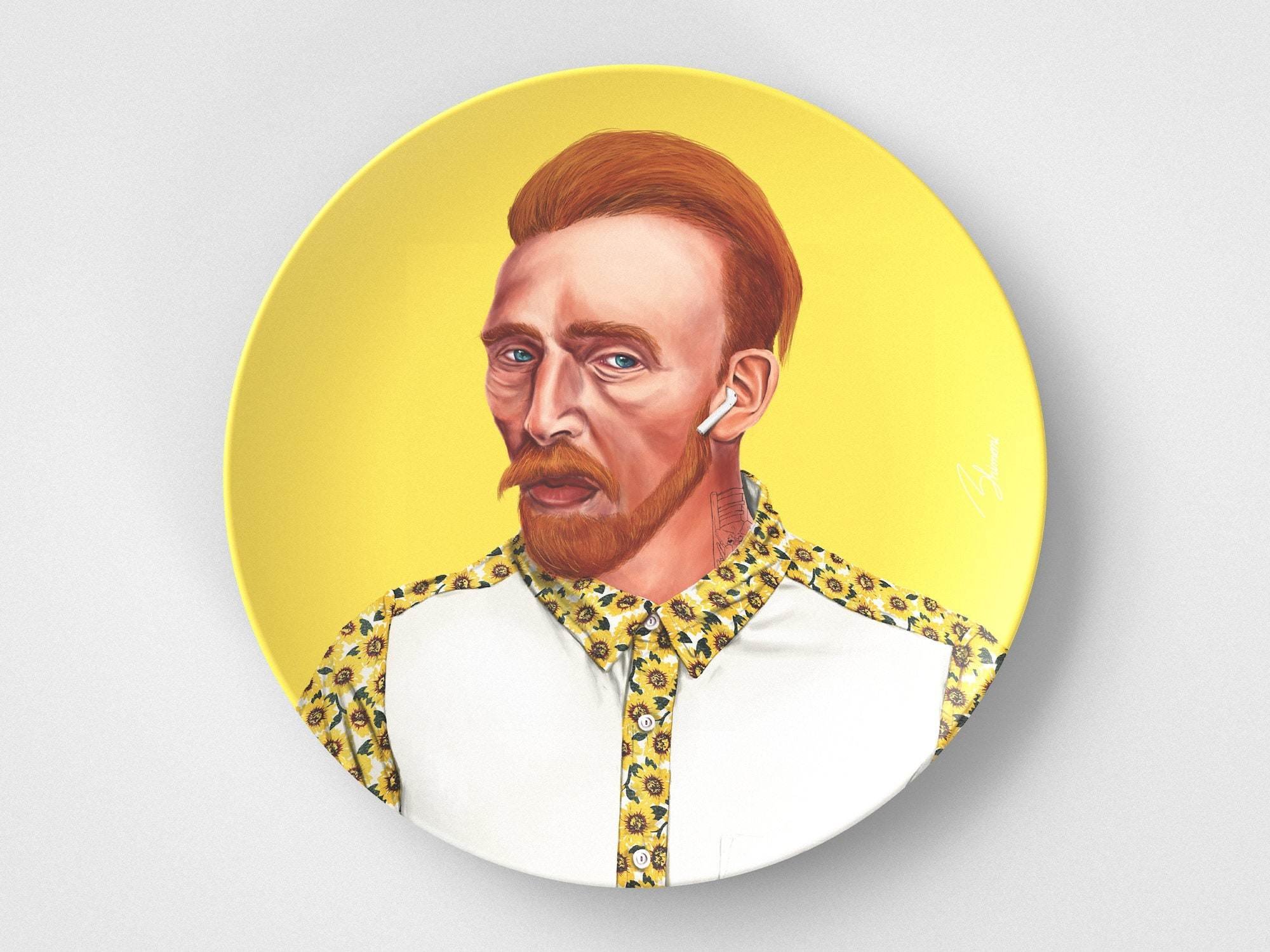 "If you hear a voice within you say 'you cannot paint,' then by all means paint, and that voice will be silenced."Vincent Van GoghThis unique 10" DecoWare® plate reinterprets the post-impressionist master Vincent Van Gogh with a sunny and contemporary makeover, complete with modern earbuds. It's a vibrant and quirky addition to any art lover's display. P R O D U C T D E T A I L S // 10" Round Dinner Plate, 0.75" Tall// Microwave safe// Oven-safe up to 250 degrees Fahrenheit for 1 hour// Dishwasher-safe// Molded from DecoWare® - a high performance medical-grade polymer// Safe for food contact// Contains no melamine, BPA's, formaldehyde or other harmful chemicals// Recyclable// 100% Made in the U.S.A.// Durable satin finish// Unbreakable with normal use  F I N E P R I N T Due to the many variations in monitors, the actual colors on each plate and platter may appear slightly different than the colors that appear on your monitor. They are awesome in real life!Each unique Plate is made to order. S H I P P I N G T I M E S Please allow 5-7 business days for your package to arrive via USPS. If your order has not arrived by the 7th business day, please contact us so we can resolve the issue. Most orders arrive to our customers within 3-7 days of placing the order, but we are unable to guarantee this fast delivery due to production and shipping times that are outside of our control. R E T U R N S & R E F U N D S Returns and exchanges are accepted within 14 days of delivery. If there are any problems with your order, please feel free to message me and I will help any way possible. W E L O V E O U R C U S T O M E R S Thank you so much for browsing our listings, don't hesitate to message with any questions or concerns. We strive to please you!