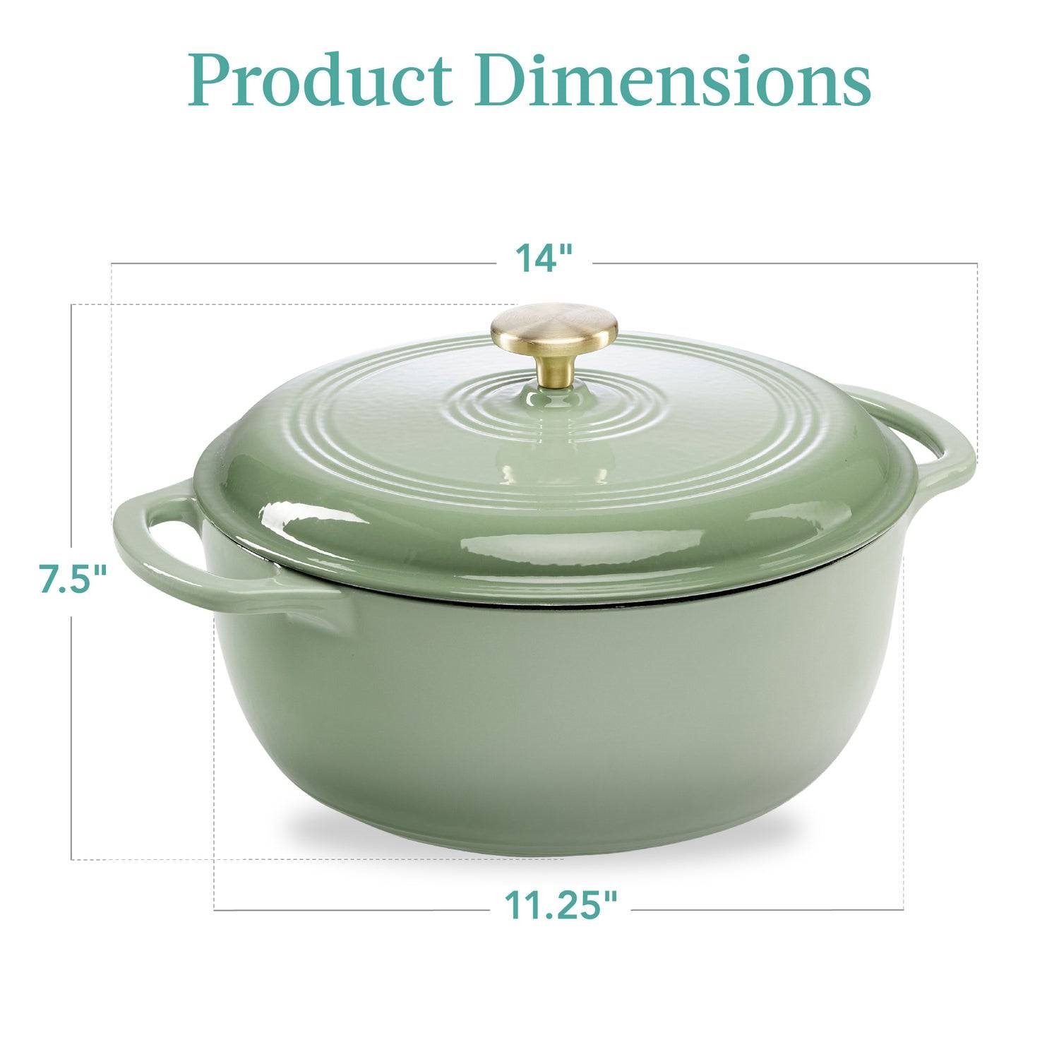 Feed large groups at any occasion with this family-sized Dutch oven that makes up to 6 quarts of casserole, soup, stew, roasts, and endless options! Usable on gas, electric, ceramic, and induction stovetops, in an oven, or even on a grill, it's perfect for cooking, roasting, frying, or baking your favorite dishes. Safe to heat up to 480 degrees Fahrenheit, with evenly distributed condensation bumps on the lid's interior and a tight seal to keep moisture, heat, and flavor inside the pot. Made of thick, heavy-duty cast iron with a glossy enamel finish and white, non-stick enamel interior, it has exceptional heat conduction, retention, and distribution for reliable cooking. Two side handles allow for easy handling, and the non-stick finish means you can hand wash it without the rough scrubbing
