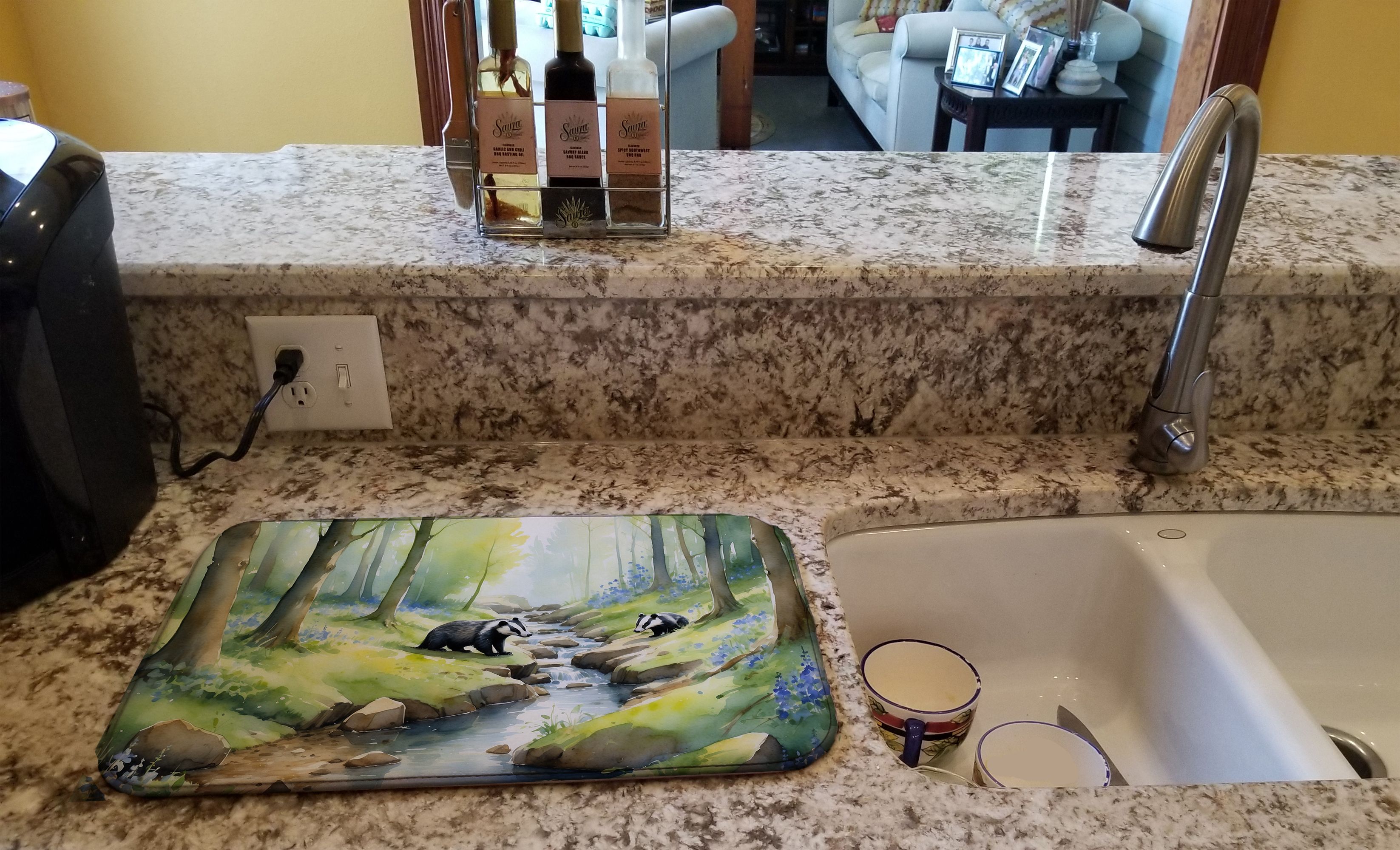 Woodland Spring Badgers Dish Drying Mat Absorbent Dish Drying Mat Pad for Kitchen Counter Dish Drainer Mat for Countertop, 14 x 21", Multicolor