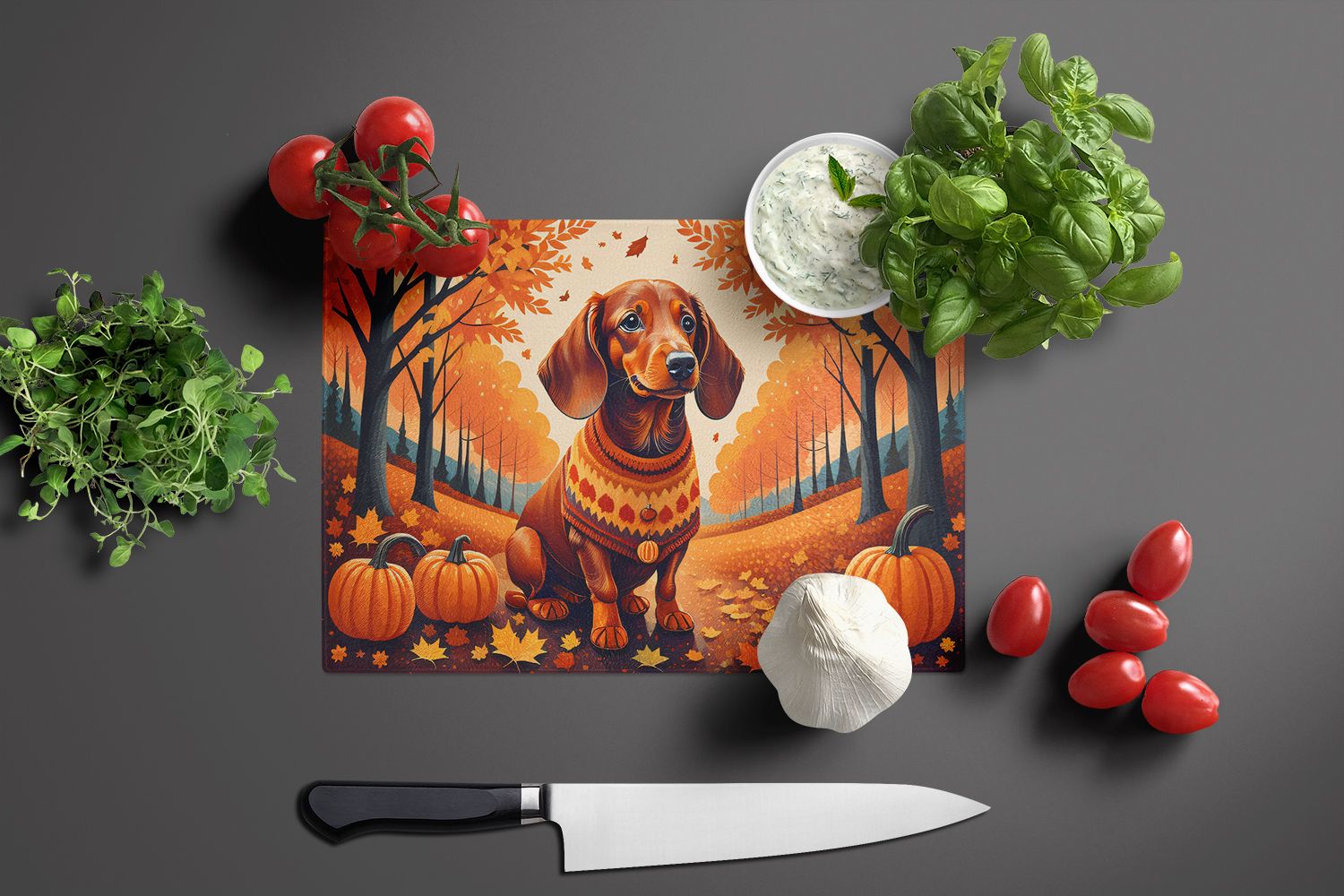 Home > NEW Dachshund Fall Glass Cutting Board Decorative Tempered Glass Kitchen Cutting and Serving Board Large Size Chopping Board
