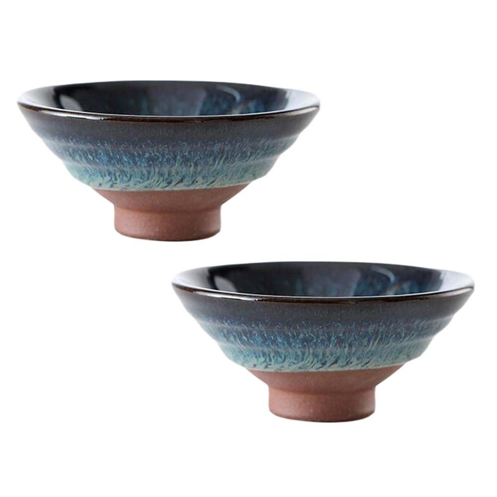 2 Pcs Rough Pottery Tea Cups Ceramic Tea Ceremony Host Cup Flambed Glazed Chinese Kung Fu Tea Cups Tea Bowl Bucket, 50ml