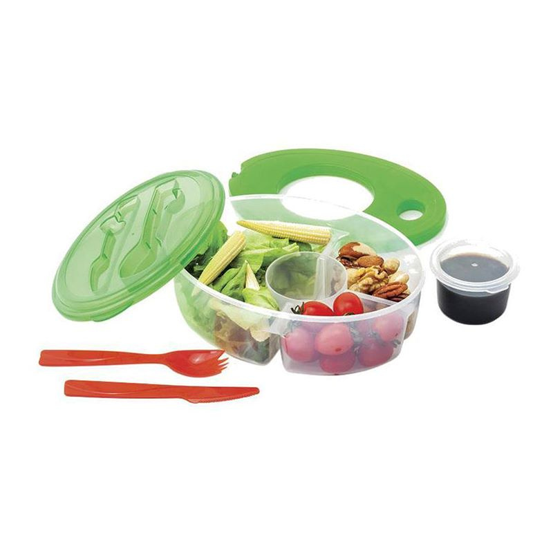Inner compartments keep ingredients separated to prevent soggy salads.